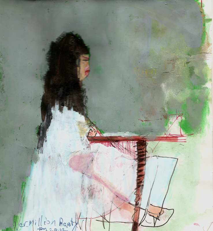 Drawing Hannah Cwiek, Putting Up Her Show. Triptych 1